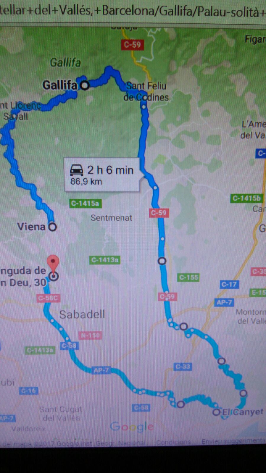 Saldremos para Gallifa y 40km y una hora despues estaremos en Palau de plegamans.